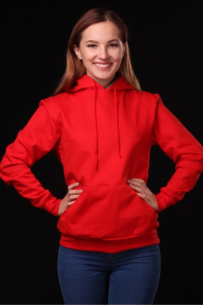 Модель. Толстовка унисекс с прямым силуэтом. Длинные рукава с манжетами. Манжеты рукавов и низ толстовки обработаны тканью рибана (специальная тканая резинка) в цвет толстовки. Толстовка с капюшоном и накладным карманом «кенгуру». В капюшон продет плоский шнур, у которого запаяны концевики. Капюшон с подкладом из кулирной глади в тон футера.