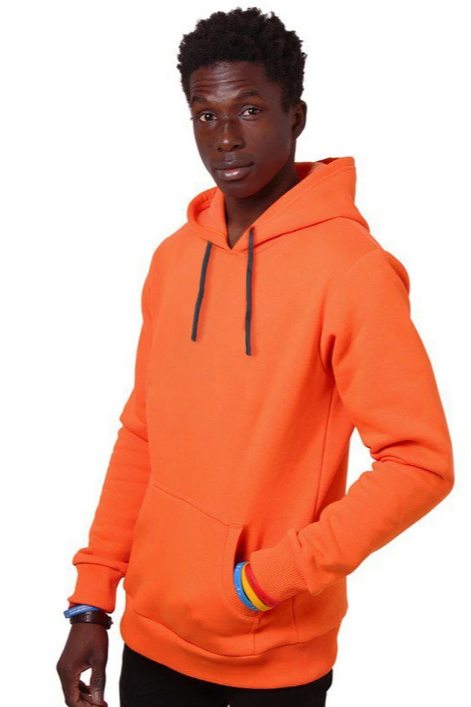 Модель. Прямой силуэт. Толстовка без молнии. Длинные рукава. Низ толстовки и рукавов обработаны тканью кашкорсе (специальная тканая резинка) в цвет толстовки. Один общий карман по типу кенгуру. Капюшон пришивной двухслойный, внутренний слой из однотонной кулирной глади с лайкрой стандартных цветов на выбор. У края капюшона продет плоский шнур шириной 15 мм стандартных цветов.