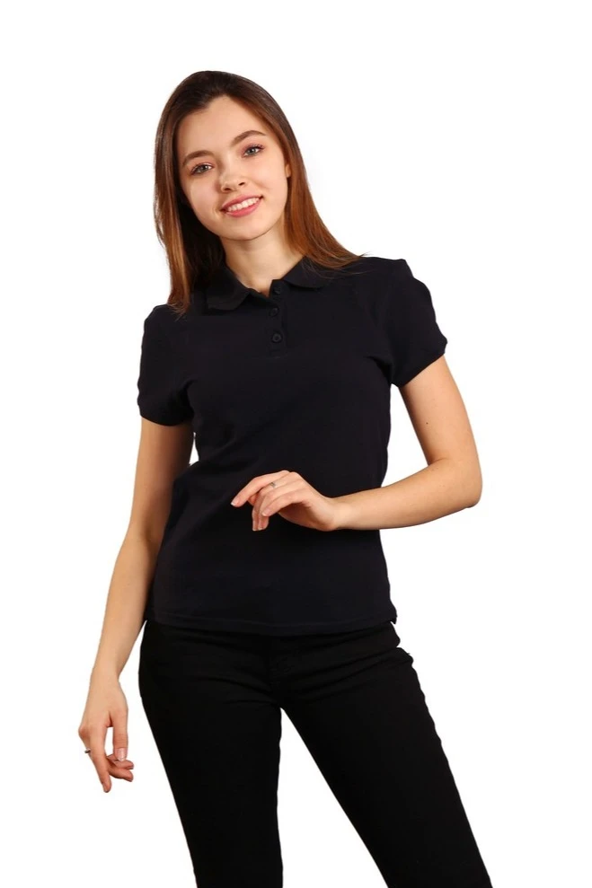 Поло Престиж женская (Modern), однотонная чёрно-синяя