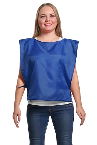 Модель: Накидка прямоугольной формы без карманов. По желанию клиента накидка может быть пошита с одним карманом 20х25 см, либо двумя карманами 13х16 см (оплачивается дополнительно). Края и горловина накидки обрабатываются косой бейкой, завязки выполнены из косой бейки длиной 30 см. Возможна обработка края накидки швом вподгибку, горловина обрабатывается косой бейкой, завязки выполнены из брючной ленты белого или черного цветов, длиной 30 см. За дополнительную плату крепление может быть изготовлено из резинки (ширина 2,5 см), либо липы, либо завязок из брючной ленты белого или черного цветов с креплением "межуровневый замок".