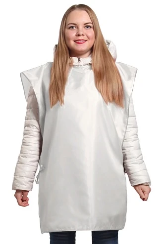 Модель: Накидка прямоугольной формы без карманов. По желанию клиента накидка может быть пошита с одним карманом 20х25 см, либо двумя карманами 13х16 см (оплачивается дополнительно). Края и горловина накидки обрабатываются косой бейкой, завязки выполнены из косой бейки длиной 30 см. Возможна обработка края накидки швом вподгибку, горловина обрабатывается косой бейкой, завязки выполнены из брючной ленты белого или черного цветов, длиной 30 см. За дополнительную плату крепление может быть изготовлено из резинки (ширина 2,5 см), либо липы, либо завязок из брючной ленты белого или черного цветов с креплением "межуровневый замок".