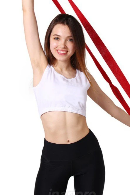 Модель. Укороченная майка имеет приталенный силуэт. По низу изделия прошита резинка шириной 2,5 см. Пройма рукавов и горловины обработаны руликом (кант из основной ткани) в цвет майки или отличным от майки цветом. Майка имеет боковые швы без разрезов по низу изделия. Форма ворота О или V-образная.