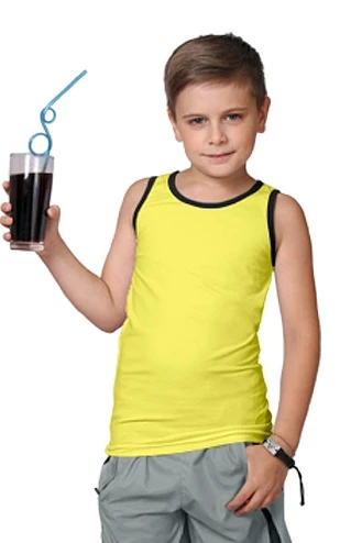 Майка детская лимонная Спорт классическая из качественного хлопкового полотна. Неотъемлемой базисное изделие в детском гардеробе. Материал со специальной технологией для занятия спортом мгновенно и результативно отводит влагу с кожи, поддерживая комфортабельные условия. В состав входит хлопок и полиэстер. Футболка представлена в лимонном цвете. Ткань станет приятной для тела ребенка, а мама оценит простоту стирки такой одежды. Имеет округлый вырез и небольшой рукав. Свободный покрой не стесняет движений, что немаловажно для детей. Эта майка Спорт в лимонном цвете поможет сделать занятия спортом еще более красочными и радостными.