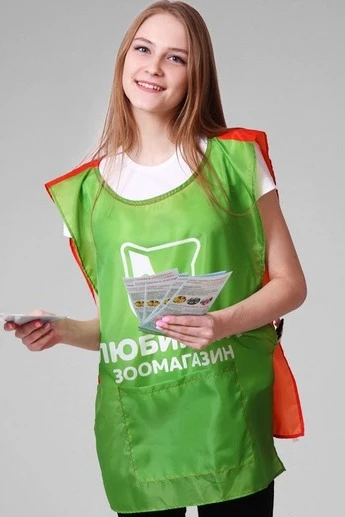 Накидка с полной запечаткой надевается поверх основной одежды, а по своей форме напоминает жилет. Такие изделия часто можно увидеть на промоутерах, раздающих рекламные листовки, и на интервьюерах, занимающихся проведением соцопросов. Приобретайте у нас накидки с нужными вам изображениями или надписями для своего персонала, контактирующего с людьми от лица вашей фирмы, общественной организации или политической партии.