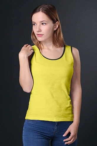 Модель. Майка с приталенным силуэтом. Пройма рукавов и горловины обработаны руликом (кант из основной ткани) в цвет майки или отличным от майки цветом. Майка имеет боковые швы без разрезов по низу изделия. Форма ворота О или V-образная.