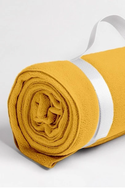 Плед Вдохновение (с ремешком) флисовый 120х155 см, однотонный желтый