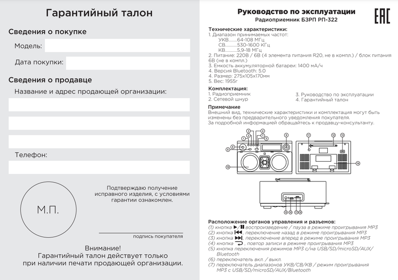 Инструкция Радиоприемник "БЗРП РП-322"