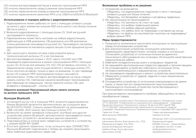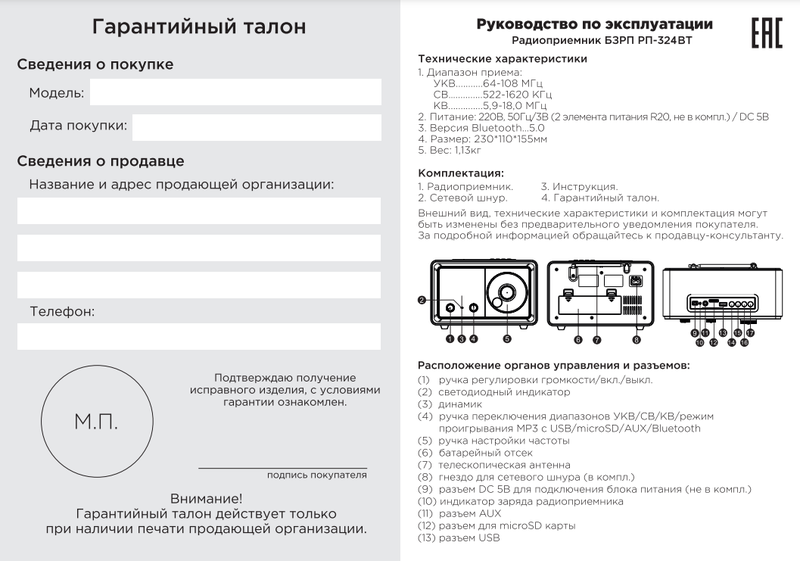 Инструкция и гарантийный талон