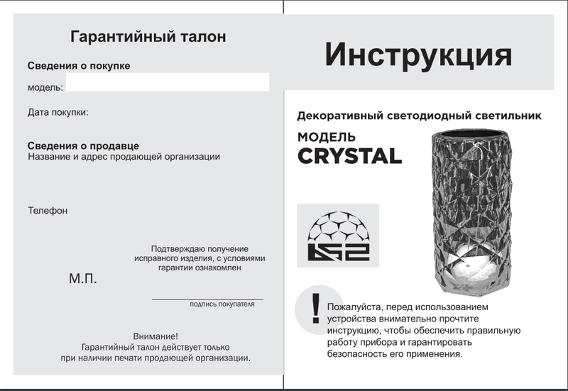 Инструкция светильник B52 "Кристал"