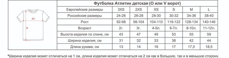 Размеры футболок Атлетик детских