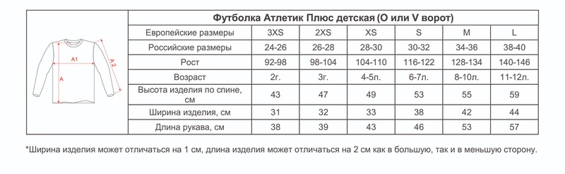 Размеры футболок Атлетик Плюс детских