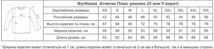 Размеры футболок Атлетик Плюс унисекс