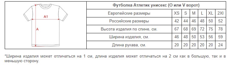 Размеры футболок Атлетик унисекс