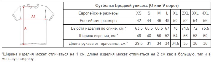 Размеры футболок Бродвей унисекс
