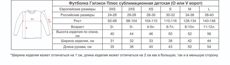 Размеры футболок Гэлэкси Плюс детских