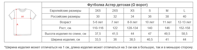 Размеры футболок Астер детских
