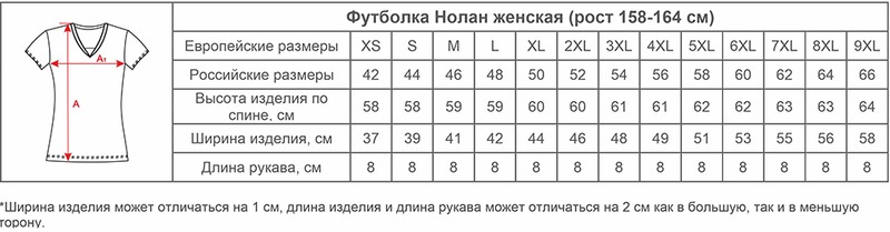 Размеры футболок Нолан женских