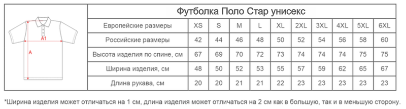 Размеры футболок Поло Стар унисекс