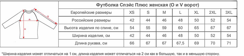 Размеры футболок Спэйс Плюс женских