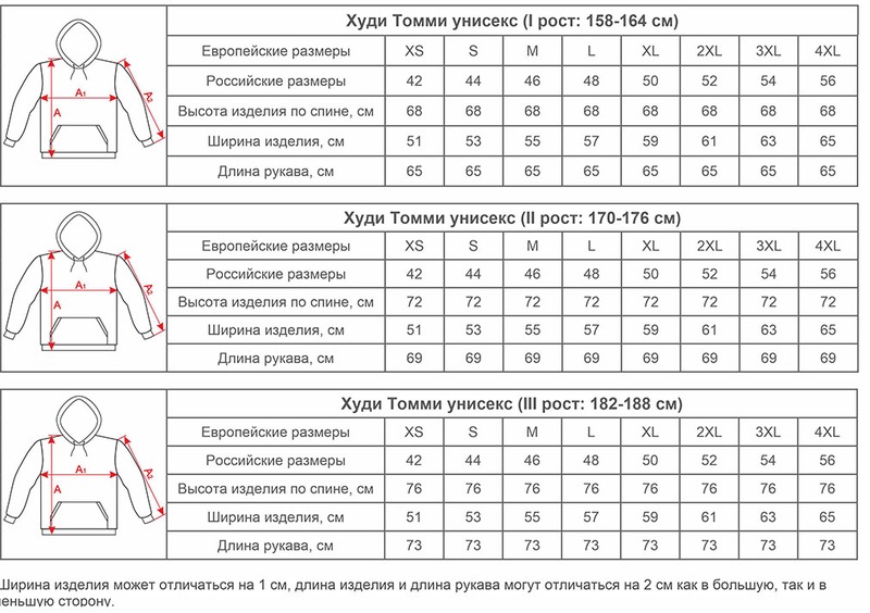Размеры Худи унисекс