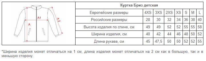 Размеры куртки Бриз детской