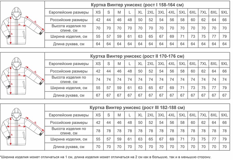 Размеры курток Винтер унисекс