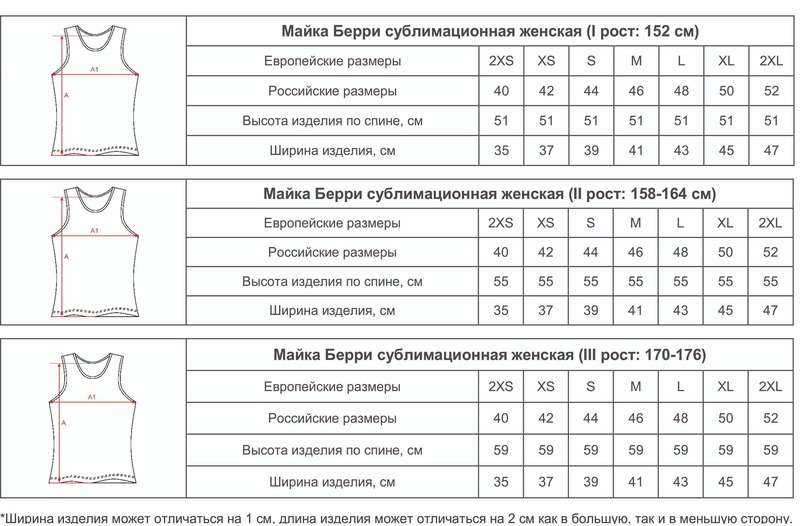 Размеры маек Берри женских
