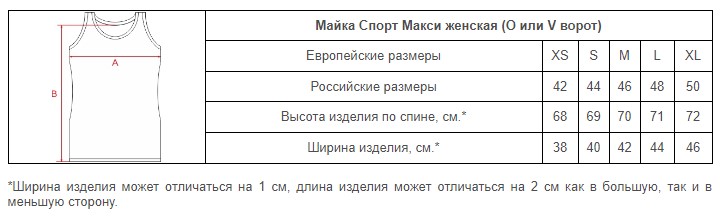 Размеры маек Спорт макси женских