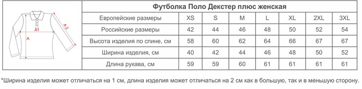 Размеры Поло Декстер Плюс женских