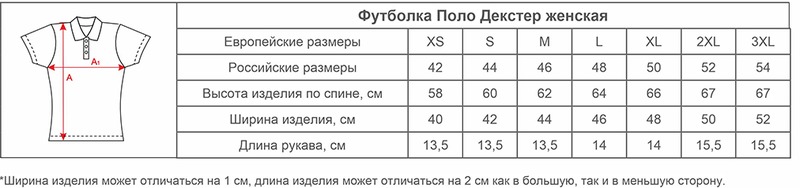 Размеры Поло Декстер женских