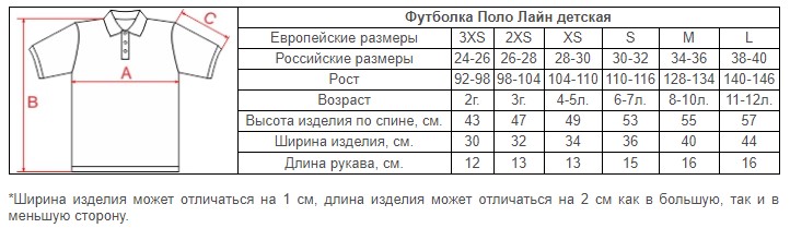 Размеры Поло Лайн детских
