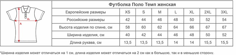 Размеры Поло Темп женских