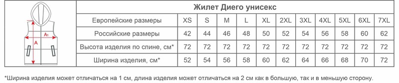 Размеры жилета Диего унисекс