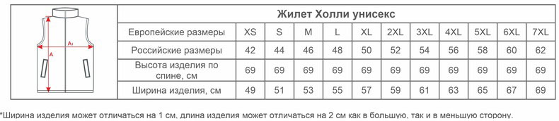 Размеры жилетов Холли унисекс